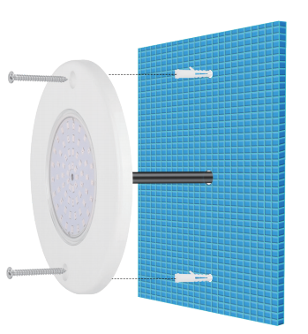 4. Place the lamp on the wall and lock it with the screws provided.